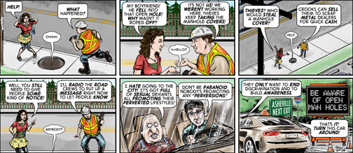 These were all the Brent Brown comics published in 2011 in the local Asheville alt-weekly paper, Mountain Xpress. Click the date for the larger version. All comics ©2011, Brent Brown.